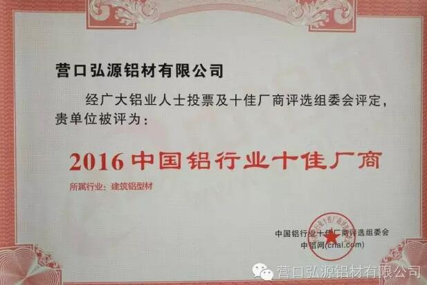 - 弘源铝材荣获中国建筑铝型材十佳厂商